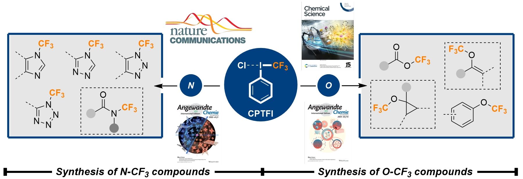三氟甲基(CF3)与N/O杂原子结合的化合物在医药、农药、功能材料领域都有重要的应用。然而含N-CF3和O-CF3官能团化合物的相关合成方法发展缓慢,主要原因是当CF3与含有孤对电子的杂原子相连后,相关的反应中间体或产物稳定性...