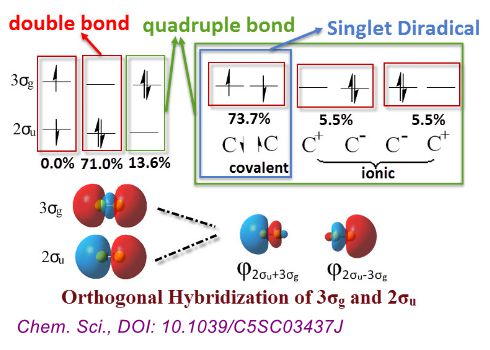 我院张珉副教授与苏忠民教授对C2分子的传统分子轨道的3σg和2σu利用正交杂化方式获得极化简并的单自旋电子轨道,实现了极化单电子在C-C键两端的独立分布。 这种方式的结果同以色列著名理论化学家S. Shaik教授和厦门大学吴...