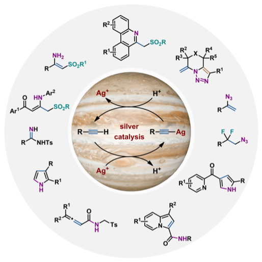 近日,我院毕锡和教授课题组受邀撰写的综述文章“Silver-Catalyzed Activation of Terminal Alkynes for Synthesizing Nitrogen-Containing Molecules”(银催化活化炔烃 — 合成含氮有机分子)在业界公认的国际重要科技...