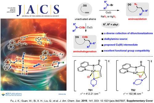 烯烃化合物的分子间胺基双官能团化反应是构建具有邻位官能团的烷基胺化合物的高效手段。尽管共轭烯烃(主要指苯乙烯以及丙烯酸酯类化合物)的胺基双官能团化反应已经得到了很好的发展,对于非活化烯烃来讲,该类型反应还在...
