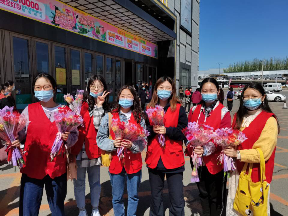 到达街道后,全体成员以小组为单位,热情地将鲜花送到每一位母亲的手中,并致以诚挚的祝福。在收到鲜花的母亲中,有带着孙儿的慈祥奶奶、有陪着孩子的勤劳母亲、有丈夫相伴的贤惠太太,她们洋溢着幸福的笑容对本次活动表示谢意。活动最后,全体成员合影并集体录制母亲节祝福视频,将祝福传给天下所有的母亲,愿青春永驻、健康幸福。