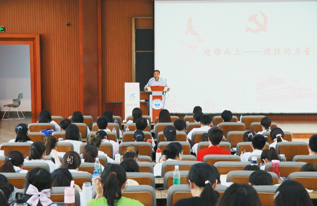 刘群教授以“迎难而上——理性的力量”为主题,立足党的百年发展结合自身经历,深刻剖析中国共产党如何“迎难而上”——在内忧外患中诞生、在磨难挫折中成长、在攻坚克难中壮大,并深入浅出分析何为“理性的力量”——带领全国人民不断从胜利走向胜利。刘群教授用生动的故事和鲜活的案例对党的百年奋斗历程、当前国内外形势以及如何面对未来挑战等三方面做了全方位讲解,教育引导全体师生党员、积极分子坚定理想信念,传承红色基因,听党话、跟党走,做一名对国家和人民有用的时代青年。