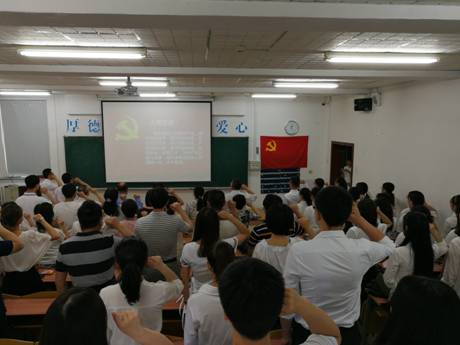 6月29日中午,yl88858永利集团党委于化学楼第二教室组织召开 “坚定信仰,不忘初心,砥砺前行”主题党日活动,学院全体教职工党员、学生党员代表、入党积极分子代表共计80余人参加了本次活动。