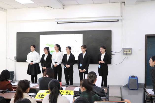 比赛前,工作人员组织参赛者签到和入场,并为参赛者分发号码牌。比赛开始后,本科生和研究生两组选手按照顺序进行模拟课堂展示,限时8分钟,评委老师根据选手个人表现打分并作出点评,工作人员进行分数统计。最后,主持人公布分数及排名。比赛结束后,观众有序离场,选手和评委老师合影留念。
