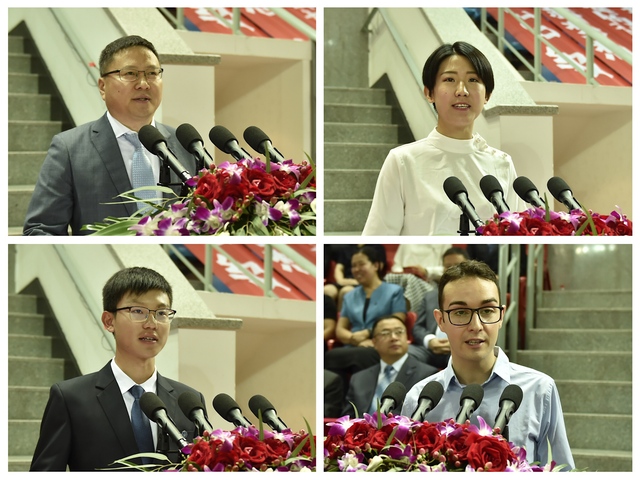 典礼上,教师代表、我院院长朱广山教授,在校生代表、生命科学学院2017级博士研究生周容光,新生代表、经济与管理学院2019级本科生白东平,国际学生代表、心理学院2019级硕士研究生阿德里安也分别作了发言。