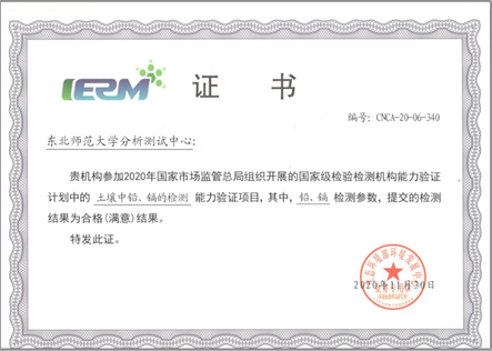 近日,我院分析测试中心在2020年国家市场监管总局组织的“土壤中铅、镉的检测”国家级检验检测机构能力验证项目(A类)中,获得合格(满意)结果。此次能力验证的通过,不但体现了分析测试中心检测结果的可靠性,还充分反映了分析测试中心管理体系和技术运作的有效性。我校分析测试中心多年来一直加强检测能力建设和检测技术水平的不断提升,曾参加国家级“奶粉中三聚氰胺”“土壤中汞、铬和铜”“未知有机化合物结构鉴定”“未知粉末的物相和(或)微观形貌分析”和“水质中硝基苯”等能力验证和检验检测机构间的比对活动,均获得了满意结果。