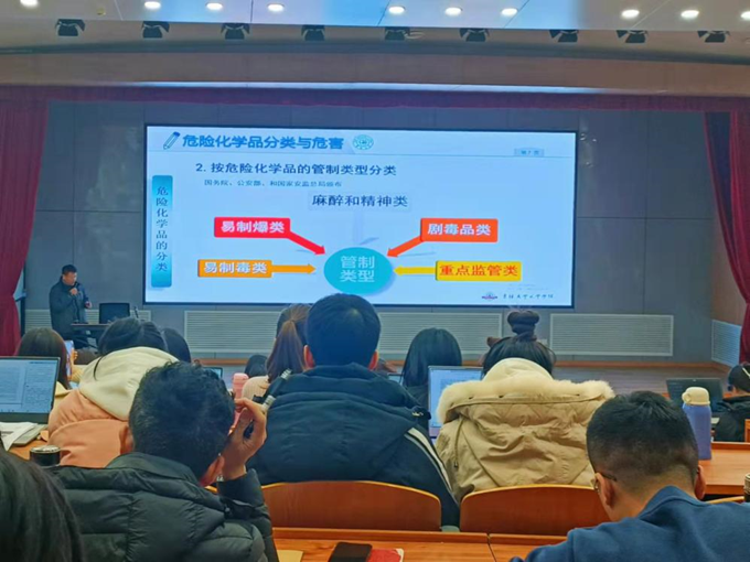 2021年11月26日,吉林大学化学国家级实验教学示范中心魏士刚副主任、吉林大学汽车工程学院田径副教授应邀来我院进行实验室安全培训讲座。培训由我院副院长仇永清主持,2021级全体硕士研究生参加本次培训活动。