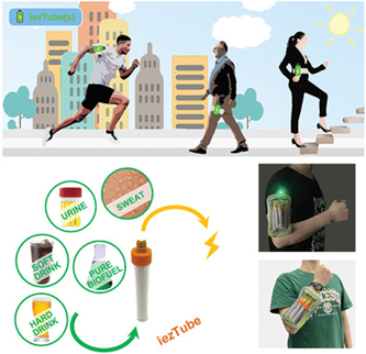 团队采用独特的“贴近皮肤穿戴”策略,率先提出“离心管中的柔性生物燃料电池(命名为iezTube)”的概念,解决了以往“穿戴在皮肤上”的汗液生物燃料电池在穿戴环境中,难以直接产生稳定电能的难题(图1)。该成果以“离心管中的柔性生物燃料电池(iezTube):用于可穿戴绿色能量收集的完全独立的生物燃料电池(Flexible Biofuel Cell-In-A-Tube (iezTube): An Entirely Self-Contained Biofuel Cell for Wearable Green Bio-energy Harvesting)”为题,在国际知名学术期刊《先进功能材料(Advanced Functional Materials)》上发表。Ming Zhou为通讯作者,博士研究生王静娟为第一作者。