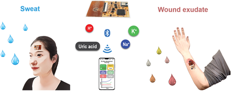图2 双功能全集成可穿戴汗液和伤口渗出液传感器示意图