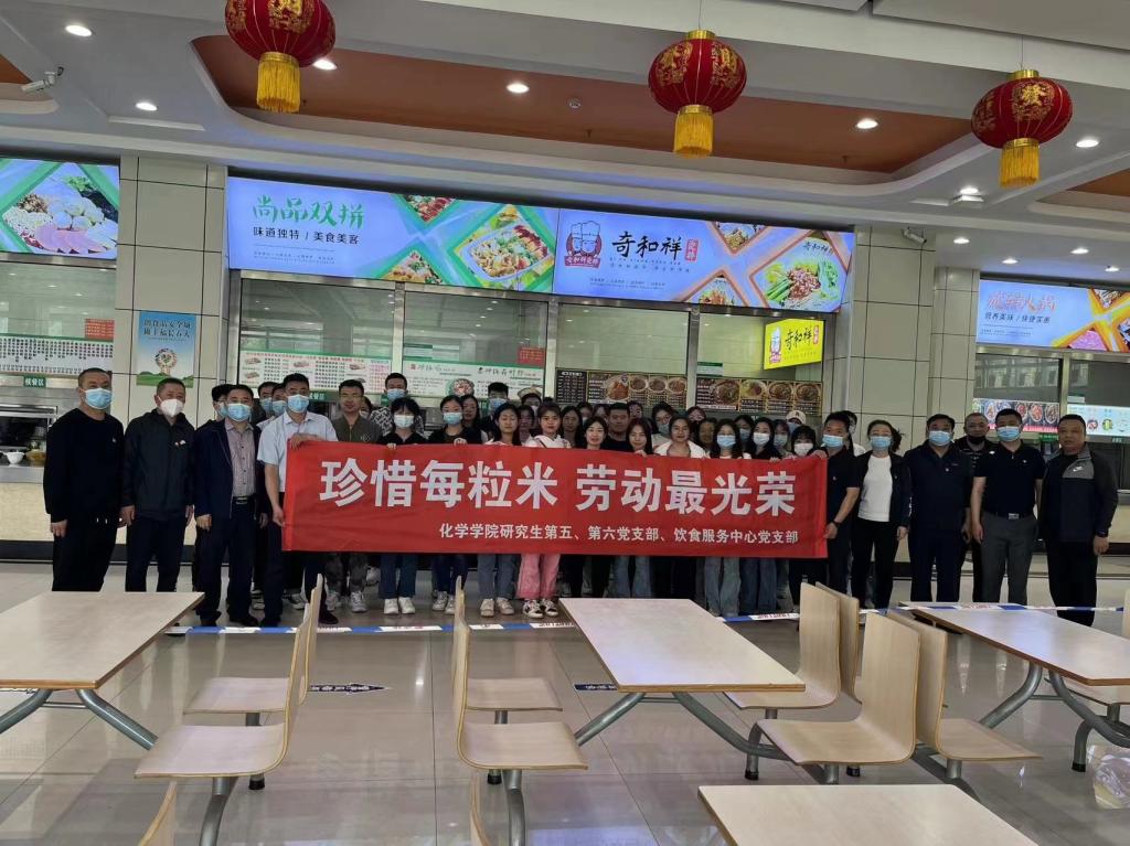为学习贯彻习近平新时代中国特色社会主义思想主题教育,践行习近平总书记提倡的关于“厉行节约、反对浪费”的社会风尚,大力弘扬勤俭节约、艰苦奋斗的优良传统。2023年5月18日,yl88858永利集团研究生第五、第六党支部联合饮食服务中心党支部在北苑食堂开展了“珍惜每粒米,劳动最光荣”主题党日活动。