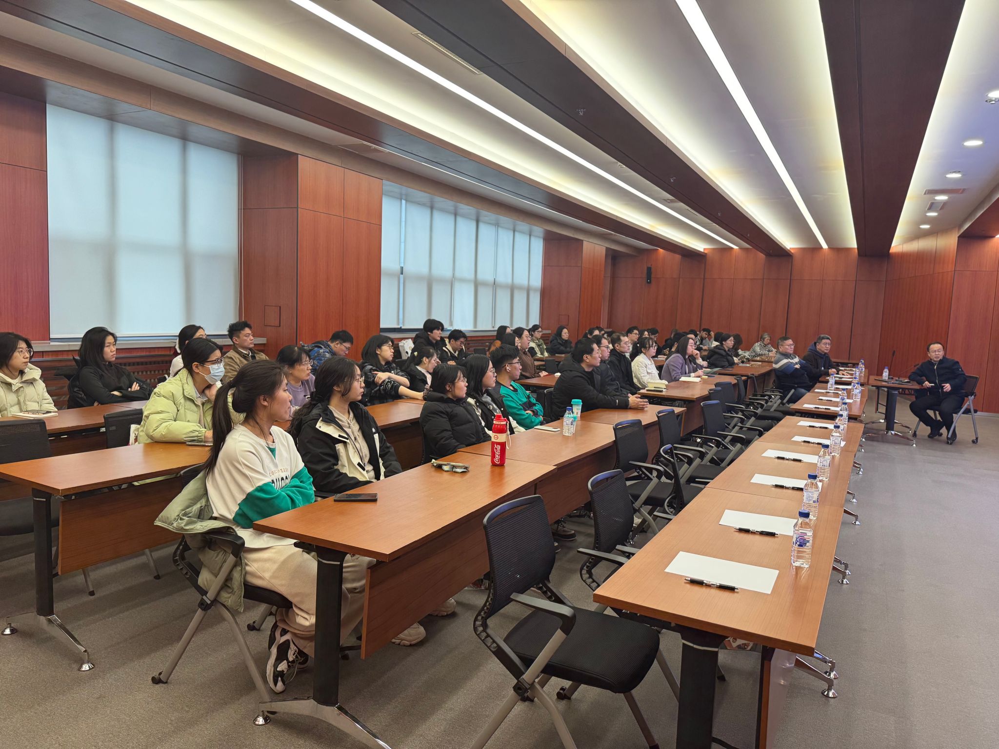 生命系统是具有多层次结构的高度复杂体系,近年来日益受到研究人员的关注。分子和细胞作为生命的基本单位,其微观尺度的研究对于揭示生命现象的本质至关重要。李院士的报告深入剖析了细胞内生物分子参与的复杂生物化学事件在生命活动中的关键作用,借助新兴的单细胞成像、单分子测序等高精度工具,得以洞悉生命最细微的运作机制。人工智能技术的融入,极大地提高了数据处理的效率与准确性,为实验与分析过程提供了智能化与创新型解决方案。该报告揭示了从复杂生命现象解析到精准医疗诊断,再到新药研发与个性化健康监测,智能生物分析化学正在为生命健康领域带来深刻的变革,并为人类健康福祉提供前所未有的发展机遇。在报告过程中,师生们踊跃提问,围绕报告内容展开热烈的讨论,与李院士共同探讨生物分析化学的发展动态,深刻领会其在生命健康研究和应用领域的重大价值。