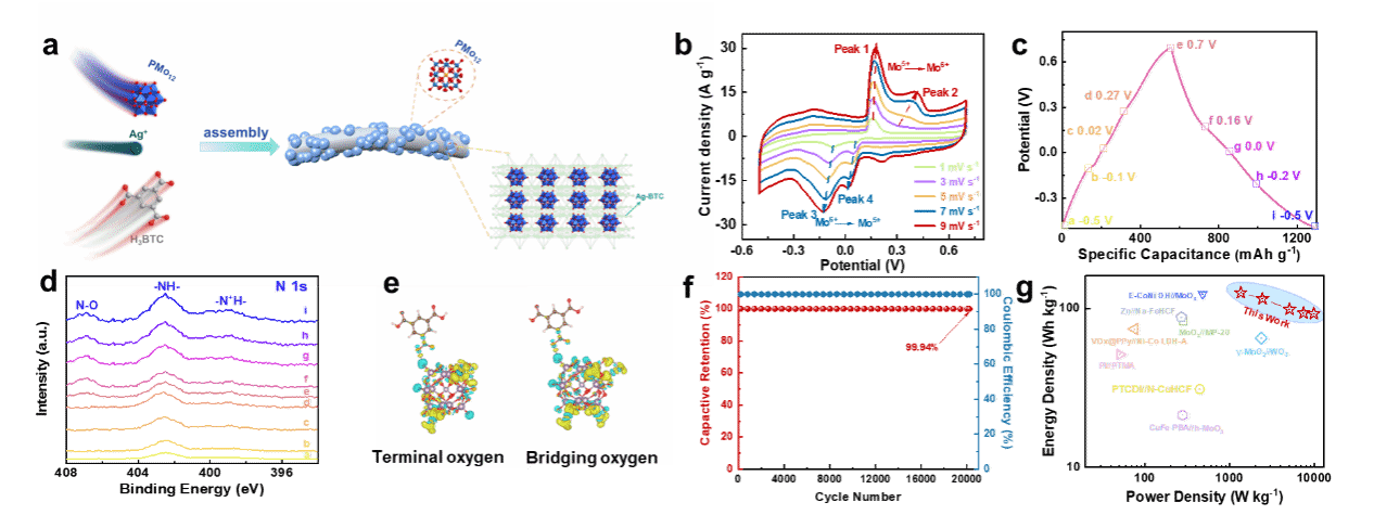 图2. {PMo12}@Ag-BTC 的合成及超级电容器性能