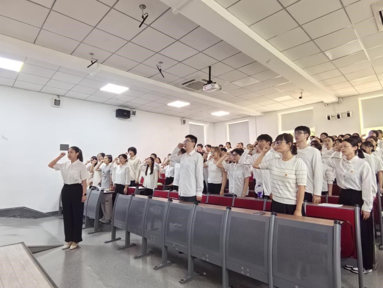 为深入学习贯彻习近平总书记关于中央八项规定精神的重要讲话和指示精神,进一步增强学生党员的纪律意识,6月26日,学院党委于化一教室组织开展党纪学习教育专题党课暨新党员入党宣誓仪式。学院党委副书记李威,本研党支部书记、2025年上半年新发展党员、各支部老党员及入党积极分子代表百余人参加了此次活动。