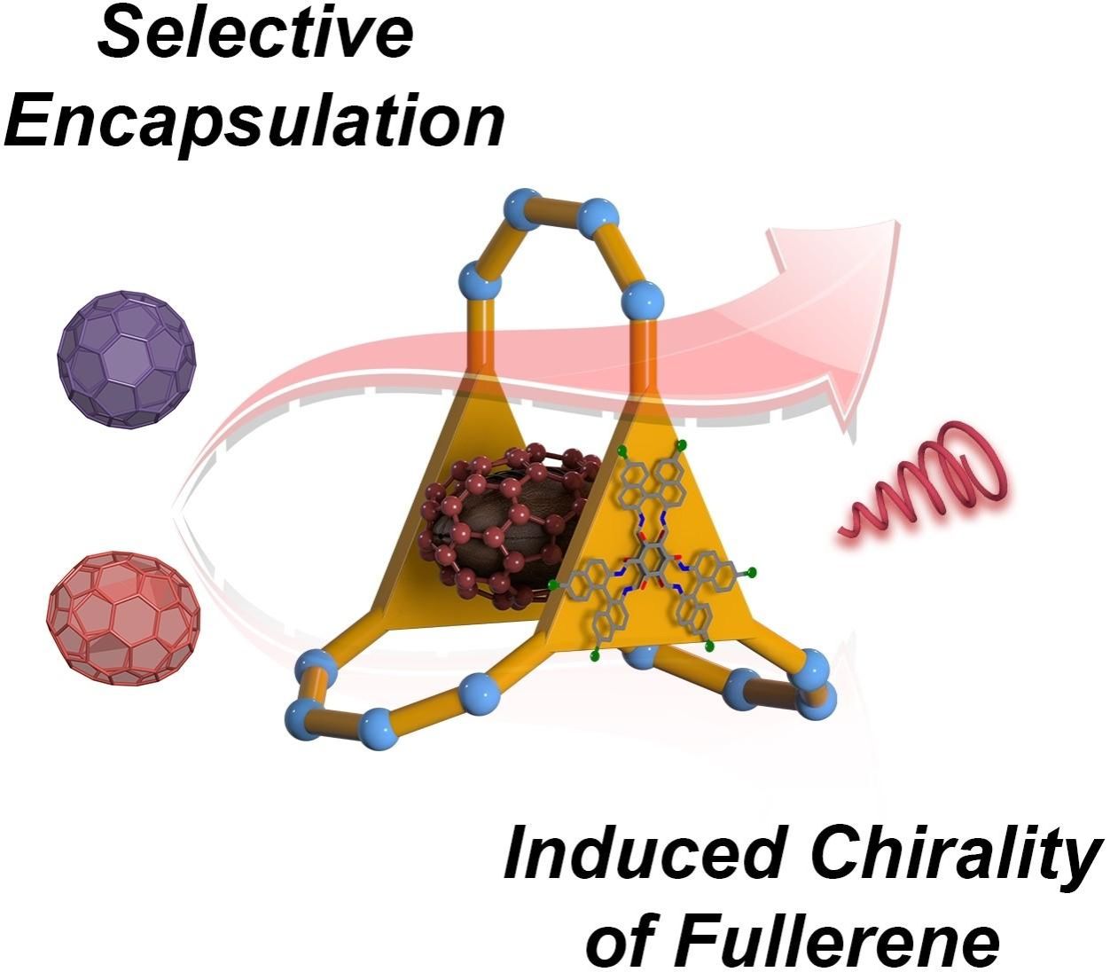 图2. 手性多孔芳香笼对富勒烯的选择性包覆和手性诱导