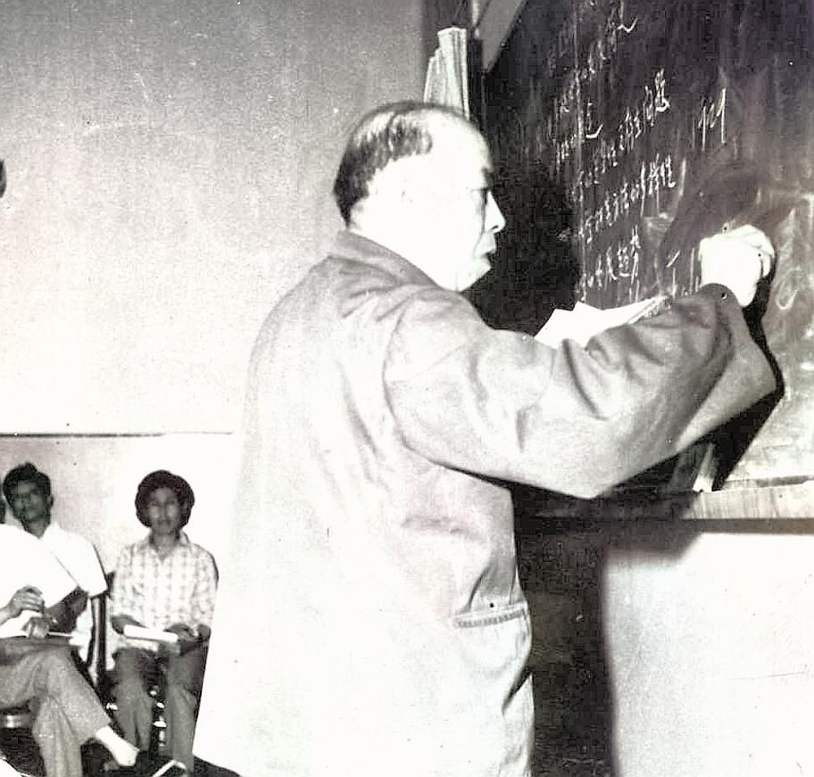 图2 郑汝骊老师在授课 左二为当时是学生的彭军