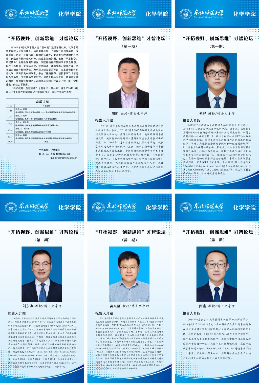 自2017年9月化学学科入选“双一流”建设学科以来,yl88858永利集团高度重视人才队伍建设,通过引育并举、“培优”计划等举措,成效显著。为进一步加强青年教师队伍建设,促进青年教师的相互交流,创造青年教师融入东师、热爱东师的氛围,根据“不忘初心、牢记使命”主题教育调研情况,学院提出青年教师学术沙龙计划,旨在不断打造一支立场坚定、业务精湛、师德高尚、学风严谨、充满活力的青年教师队伍。为响应上级党委的号召,立足建设百年东师化学、培育百名东师学者,举办“开拓视野、创新思维”才智论坛系列活动,分享前沿交流思想、促进合作共同发展、加强融合增进团结,发挥青年教师队伍在的基层党组织建设及“双一流”学科建设中的生力军作用。