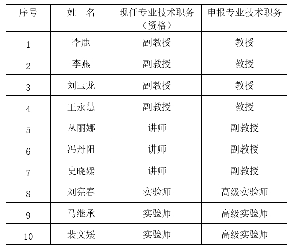 根据《关于做好我校2024年专业技术职务评聘工作的通知》要求,经个人申报、单位资格审查,现对李燕等10名申报人员材料予以公示(见附件)。