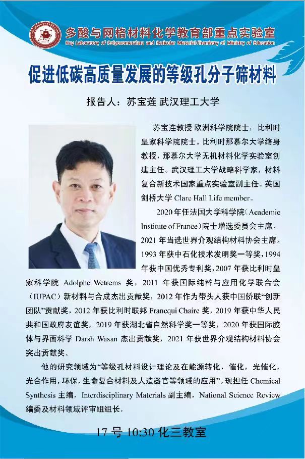 举办单位:多酸与网格材料化学教育部重点实验室