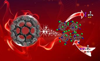 由于地球逐年变暖、北极冰川融化、海洋酸化等问题日益突出,温室气体CO2 的捕获和存储引起了科研工作者们广泛的关注。为解决空气中CO2 气体含量过高的难题,经过大量的理论计算发现富勒烯分子能够提供适宜CO2吸附和存储的表面环境,如果将单分散的富勒烯分子作为气体吸附剂,它们有可能展现优异的二氧化碳捕获和分离性能。然而,富勒烯单质是以紧密堆积的状态存在的,无法提供气体分子吸附所需的孔道或空穴。2016 年,朱广山教授课题组将富勒烯C60 分子作为多面体型构筑基块,采用简便的酸催化偶联反应,合成了一系列富勒烯型多孔芳香骨架材料 (图二)。通过系统的调整反应单体比例,将材料比表面积从传统富勒烯分子的19 m2 g-1 提升到多孔芳香骨架材料PAF-60 的1094 m2 g-1。进一步经过对链接分子上的取代基团行进修饰,朱广山教授课题组成功制备了具有不同孔道环境的系列多孔芳香骨架材料PAF-61 和PAF-62。这些靶向制备的富勒烯型多孔芳香骨架材料展现了超高的CO2 存储和选择性吸附能力。该研究工作由朱广山教授、元野副教授指导完成,发表于化学权威期刊英国皇家化学会《化学科学》上(Coupling Fullerene into Porous Aromatic Frameworks for Gas Selective Sorption, Chem. Sci. 2016, 7, 3751)。