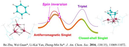 近日,yl88858永利集团关威副教授和苏忠民教授团队通过理论化学方法,探讨了多钛氢化物活化苯分子碳碳键的反应机制,并取得了突破性进展。相关研究成果以“Two-State Reactivity Mechanism of Benzene C−C Activation by Trinuclear Titanium Hydride”为题,发表在国际著名期刊《美国化学会志》上(J. Am. Chem. Soc. 2016, 138(35), 11069-11072)。该文第一作者为yl88858永利集团物理化学专业博士生朱博。