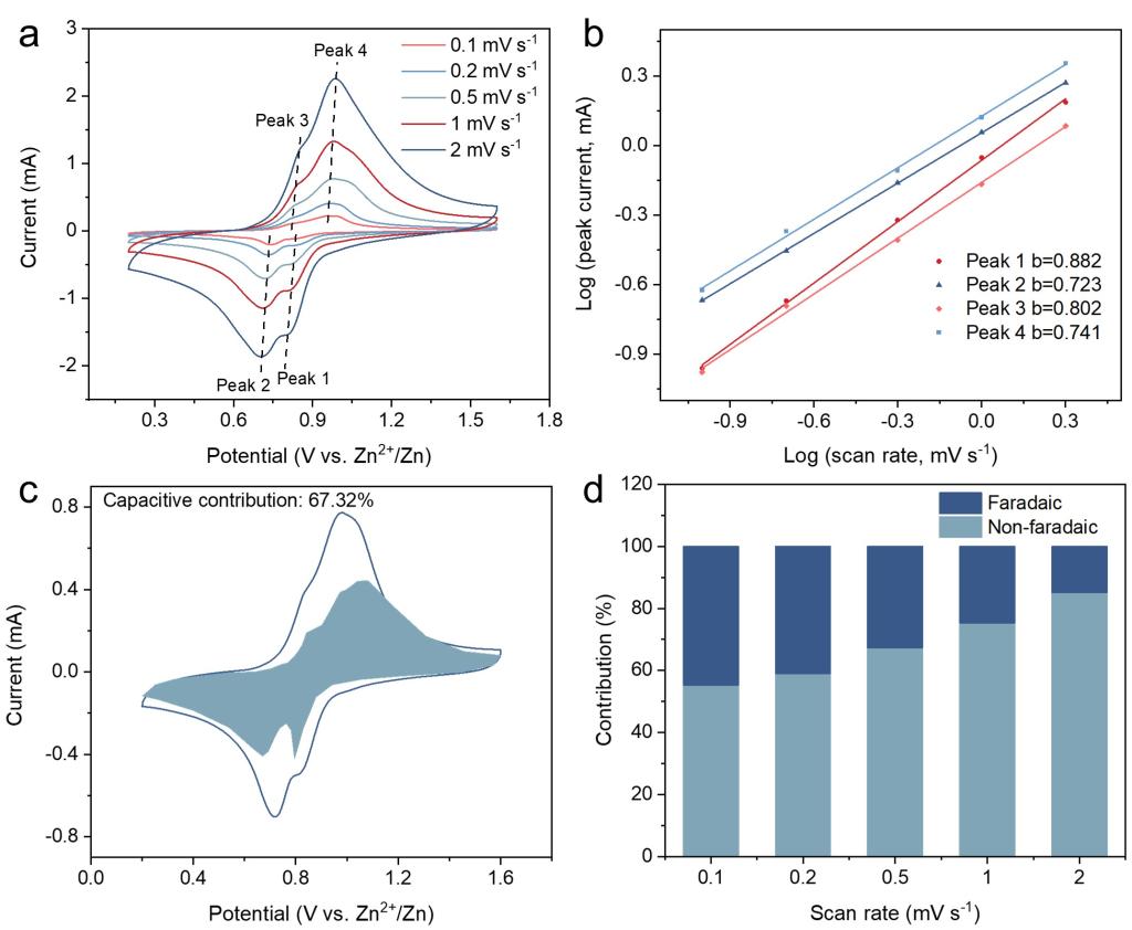 图1. BNDTH及其复合物作为正极在水系锌离子电池中的电化学性能。