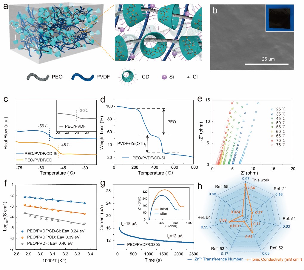 鉴于此,yl88858永利集团的朱广山教授和刘东涛教授构建了一种具有共价键的新型多孔环糊精聚合物框架(CD-Si),并用于锌-碘电池的固态电解质 (PEO/PVDF/CD-Si)。